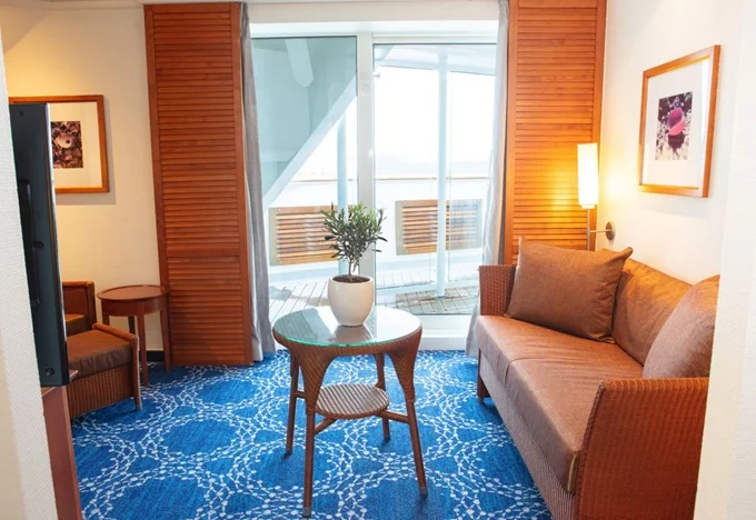 | SJB - Junior Dream Suite s balkónom kajuta 21 m² / balkón 6 m² . Max 3 osoby, 9. paluba. Stolovanie vo vyhradenej časti reštaurácií Smoked Olive a Pink Moon. | 2 858 € 1 429 € za osobu | ||