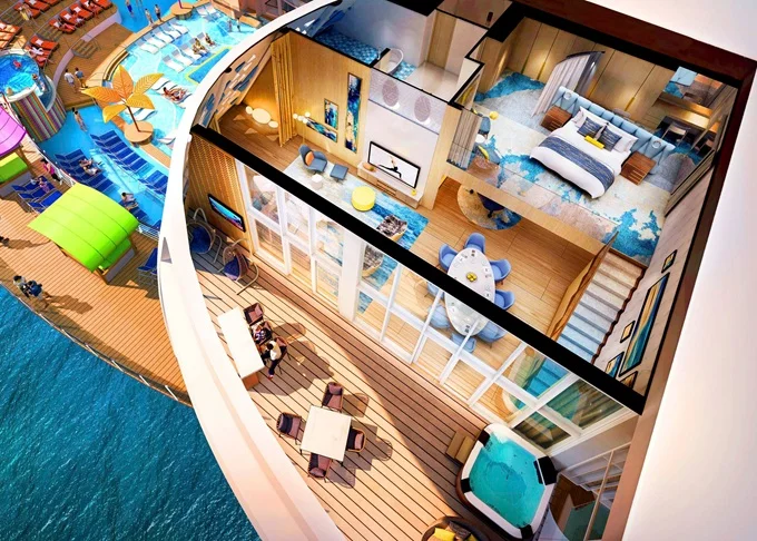 RL - Royal Loft Suite 141 m² + balkón s vírivkou 78 m². 2-podlažný apartmán. 18. paluba. Max 6 osôb. Výhody Royal Suite Star Class. 25 676 € 12 838 € za osobu